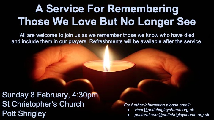 * * * Safeguarding: At the church of St Christopher Pott Shrigley we work hard to maintain a safe environment for all. We are committed to implementing the House of Bishops’ safeguarding policies and good practice guidance. If you have any concerns or enquiries regarding safeguarding, please contact our safeguarding officer. Parish Safeguarding Officer: Kath Matheson: safeguarding@pottshrigleychurch.org.uk Diocesan Safeguarding Team safeguarding@chester.anglican.org or 01928 718834 (option 4) More infomation on safeguarding Registered Charity number 1193382 | |||||||||||||||||||||||||||